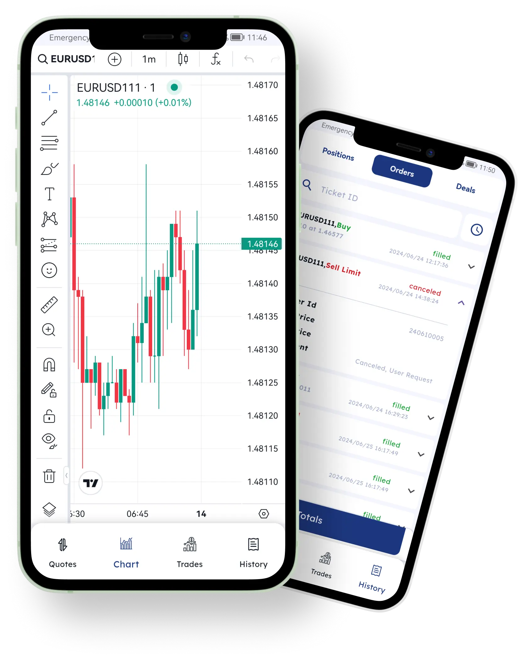 Vertex offers two powerful mobile apps that keep your traders connected on the move. Choose between the classic app or the upgraded Pro version. Both are fully branded, fast, and built to deliver a smooth trading experience.